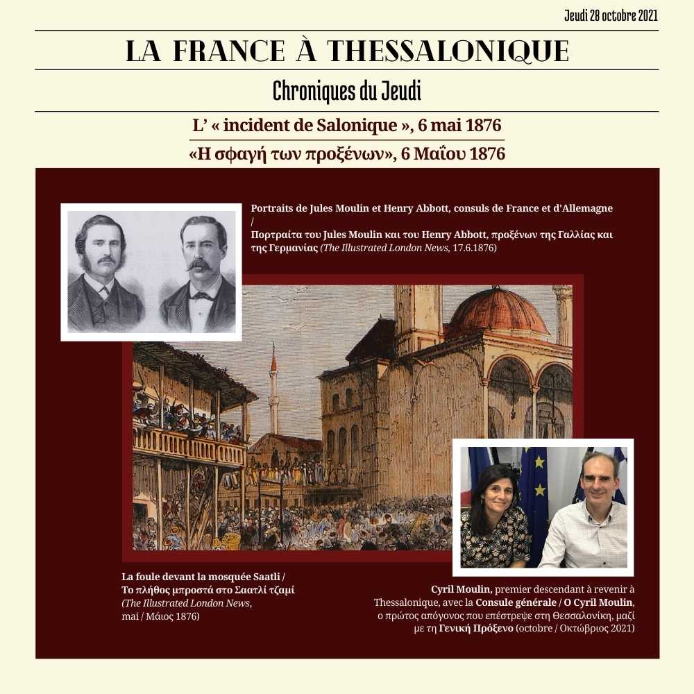 C’est à l’occasion de la venue récente à Thessalonique de l’arrière-petit-fils du diplomate français Jules Moulin, premier descendant à revenir sur les traces d’un passé familial hors du commun, que nous nous sommes plongés dans l’histoire de l’assassinat des consuls de France et d’Allemagne, Jules Moulin et Henry Abbott, qui eut lieu en plein cœur de la cité alors ottomane, le 6 mai 1876.