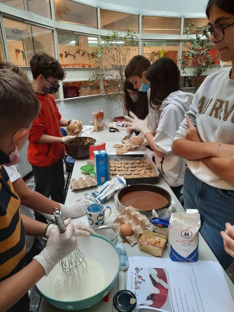 Dans le cadre de leur cours de grec, les élèves de sixième ont préparé des gâteaux de Noël. Après avoir étudié les recettes, ils ont entrepris, en groupes, l’achat des ingrédients nécessaires ainsi que la réalisation de leurs recettes préférées. Grâce à eux, toute l’école a été embaumée de l’odeur des gâteaux de Noël… Merci aux parents qui ont contribué à la réalisation de cette action !